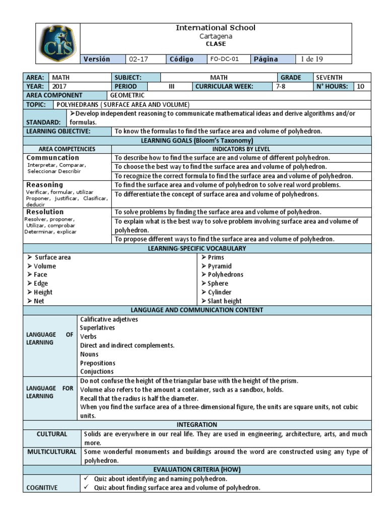 Fcc Math 7 3p 7 8 Polyhedrans Surface Area And Volume Pdf Area Volume